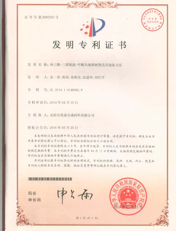 專利四:環(huán)己酮-三聚氰胺-甲醛共縮聚樹脂及其制備方法