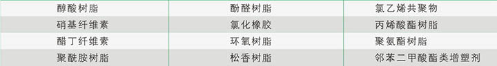 INT 8605樹(shù)脂與絕大多數(shù)用于涂料/油墨的樹(shù)脂有良好的相容性。包括下列樹(shù)脂: